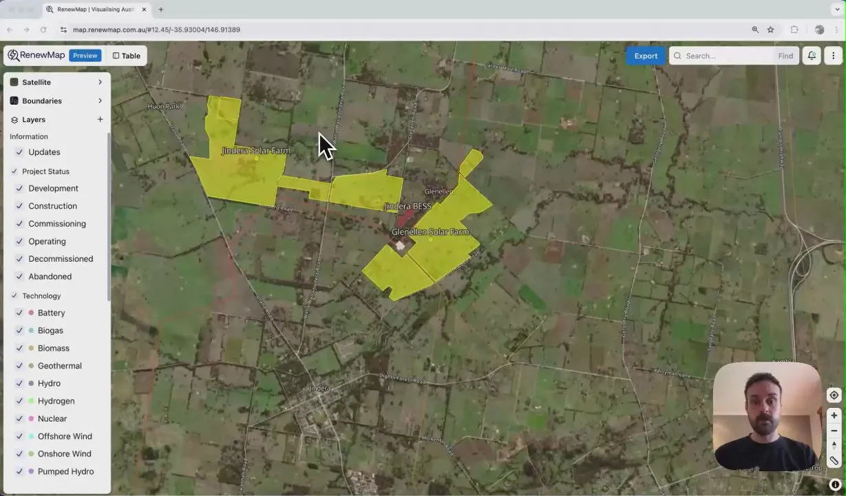Overlay aerial imagery with RenewMap’s comprehensive project data, including infrastructure footprints, Renewable Energy Zones, and resource maps.
